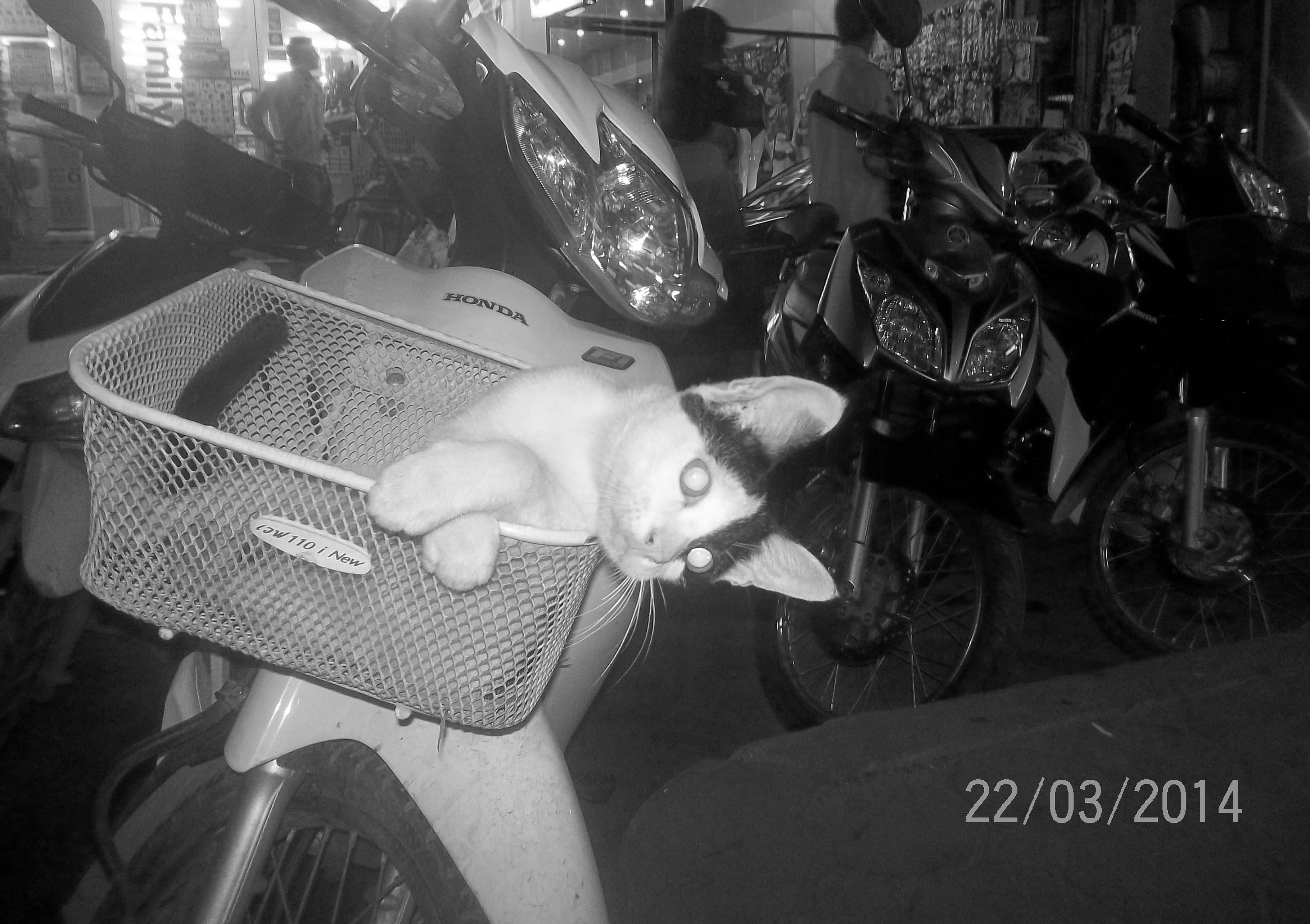 Chilling at the bar, under tables and walking across them too.